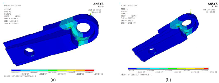 (a) The stress of the cantilever beam in the filling process; (b)The stress of the cantilever beam in the drawing of patterns process