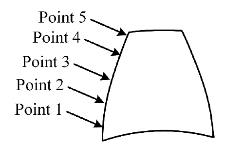 In this paper, three different rotational speeds are chosen to assess the degradation process of the gear system, and the first gear teeth of gear 1 is set as the research subject. As shown in Figure 5, the contact damage of the five points on the first gear teeth are investigated based on the method proposed.